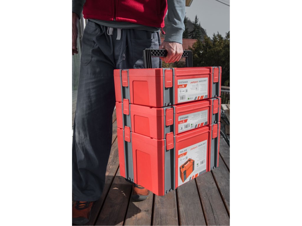 doplňující parametr: | vnitř. rozměr 427x292x118mm,možnost pevného spojení více boxů dohromady pomocí posuvných zámků, box velikosti L umožňuje přimontování koleček, díky kterým je mobilní, což je výhodou zejména v okamžiku spojení více boxů |