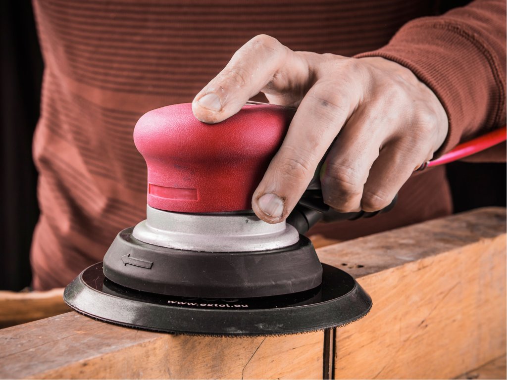 Pneumatická excentrická bruska je určena pro broušení dřeva, kovů, plastů, spárovací a emailové hmoty a také k leštění. Součástí brusky je výstup pro připojení externího odsávání prachu a regulátor otáček. Nosič brusného kotouče je vybaven suchým zipem, který umožňuje rychlou beznástrojovou výměnu brusného papíru.