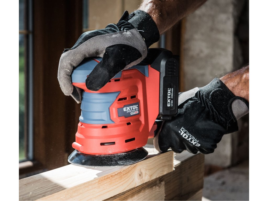 Aku vibrační bruska je ideální nástroj pro broušení dřeva a dřevěných materiálů, kovů a k zabroušení poškozených míst povrchové úpravy, např. barvy a laku, dále tmelů apod. bez použití vody. Rotační pohyb vytváří vysoký brousící výkon a excentricita vytváří náhodný pohyb, který zabraňuje vzniku nežádoucích hlubokých rýh v broušeném materiálu. Brusná plocha je vybavena suchým zipsem, který umožňuje snadnou výměnu brusných papírů. Integrované odsávání pilin udržuje čistý pracovní prostor při práci a po práci jednoduše vysypete sběrný vak a je uklizeno. Pro běžnou práci dostačují jeden nebo dva 2000mAh akumulátory, které můžete rychle nabít v rychlonabíječce, pro náročnější nebo delší práci doporučujeme větší akumulátory s kapacitou 4000–8000mAh. Akumulátor lze použít ve všech typech nářadí řady EXTOL SHARE20V. Díky použité Li-ion technologii je ho možné kdykoliv dobíjet, aniž by se tím snižovala jeho kapacita. Li-ion akumulátor ztrácí energii vlivem samovybíjení velmi pomalu a vydrží dlouho nabitý a připravený k použití.