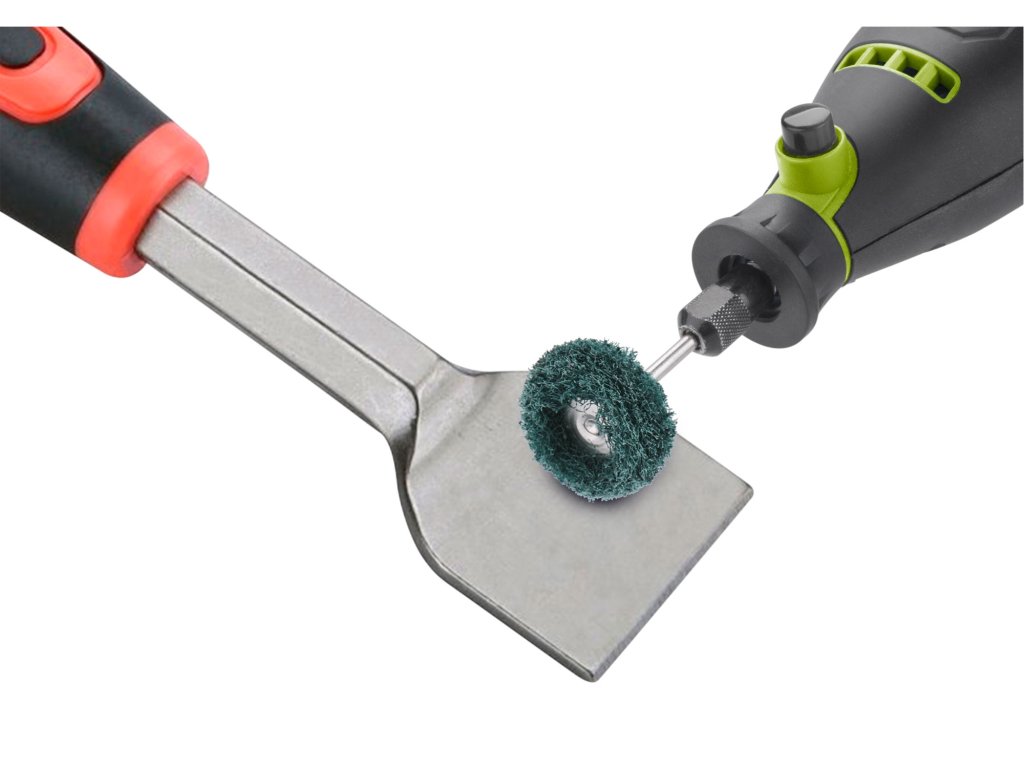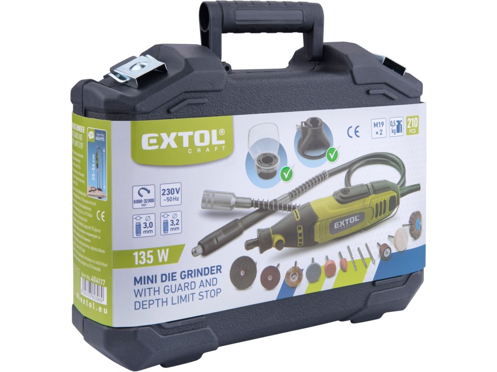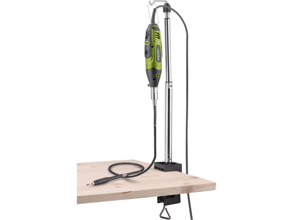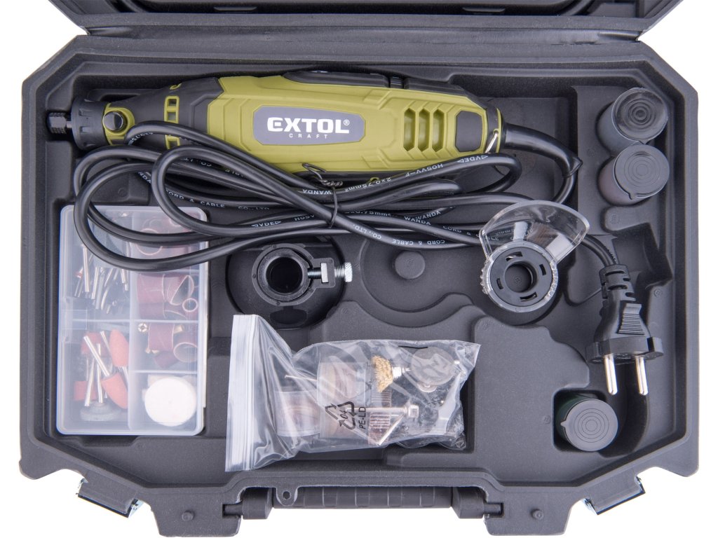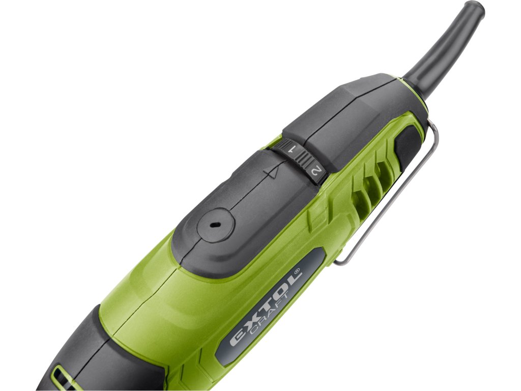Malá bruska s řadou nástavců, určená k jemným gravírovacím pracím, preciznímu opracování dřeva, kovu či plastů a práci ve stísněných prostorech. Má ergonomický tvar a je pokrytá gumou v místech úchopu, což snižuje únavu při práci. Stroj umožňuje výměnu a montáž upínacích kleštin pro uchycení nástrojů s průměrem stopky 3 nebo 3,2 mm. Součástí balení je sada 210 kusů brusných a řezacích nástrojů a nástavců. Pro velmi jemnou a drobnou práci je u brusky ohebný nástavec.