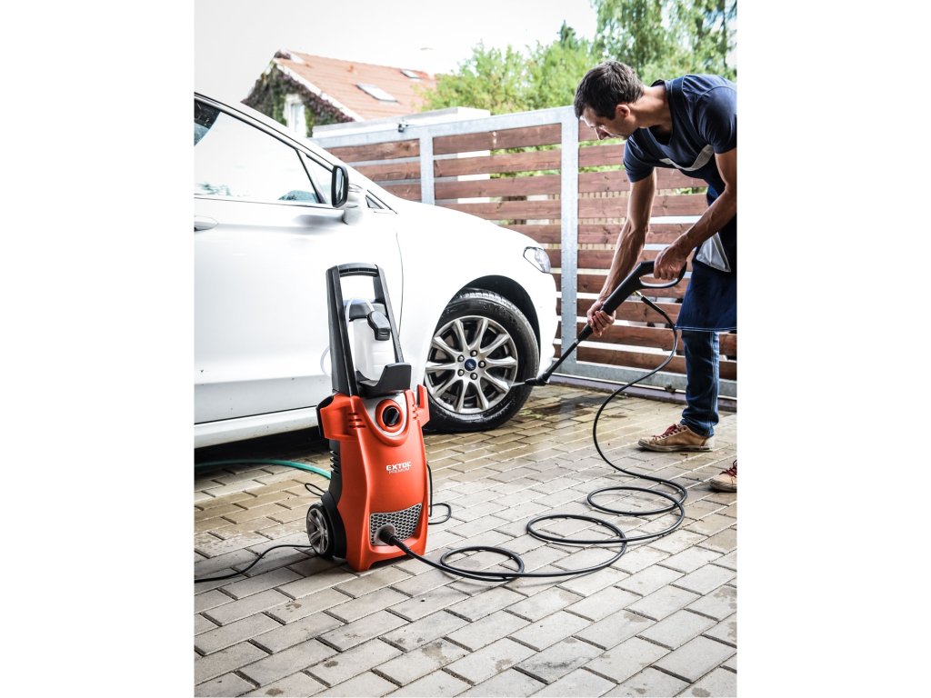 - nastavitelná tryska na nástavci umožňuje seřídit rozptyl paprsku vody pro plošné čištění a tlak vody na výstupu dle potřeby