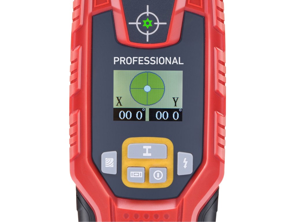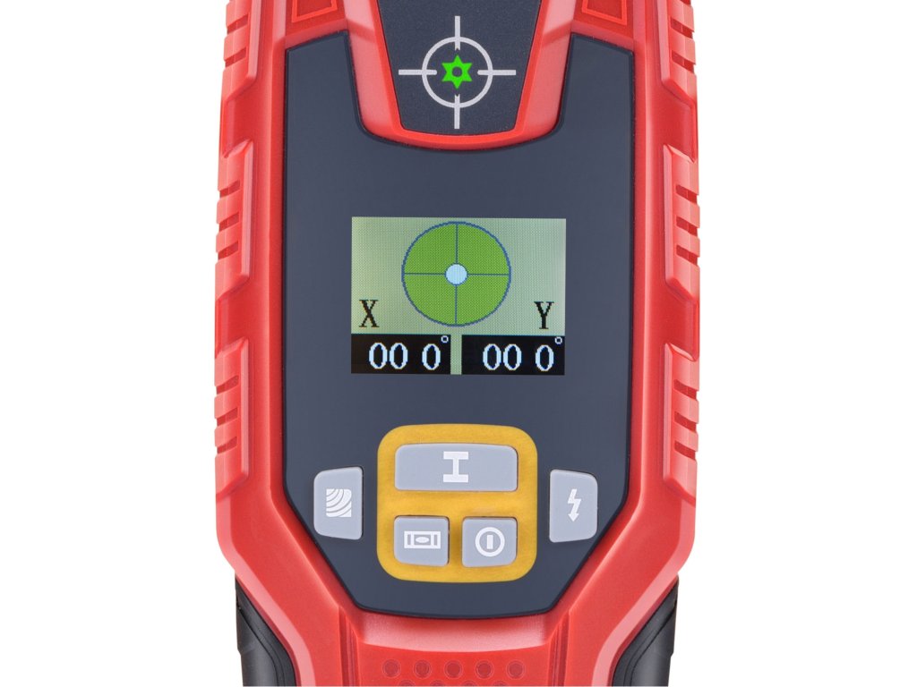 - funkce elektronické vodováhy s grafickým zobrazení na displeji, rozsah (-90°až +90°), přesnost +-0,5°