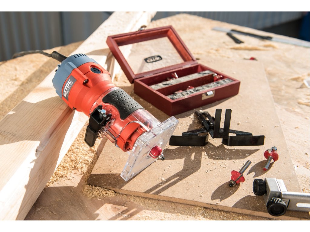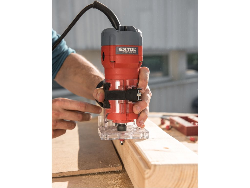 Ohraňovací frézka se vyznačuje jednoduchostí a spolehlivostí. Tato jednoruční minifrézka je určena k frézováni otvorů, hran a profilů do dřeva s různými tvary v závislosti na tvaru použité tvarové frézy. Malé rozměry a nízká hmotnost umožňují vedení frézky jednou rukou a snadnou manipulaci při práci. Vysoké otáčky zajistí dokonale hladký opracovaný povrch. K frézce jsou přibaleny tři různé vodítka pro vedení frézky při práci. Válečkové vodítko pro frézování oblých hran. Podélné vodítko pro frézování podél rovných hran a kružnic. Kopírovací vložka pro frézování dle přiloženého vzoru. Stojan frézky umožňuje nastavit hloubku frézování.