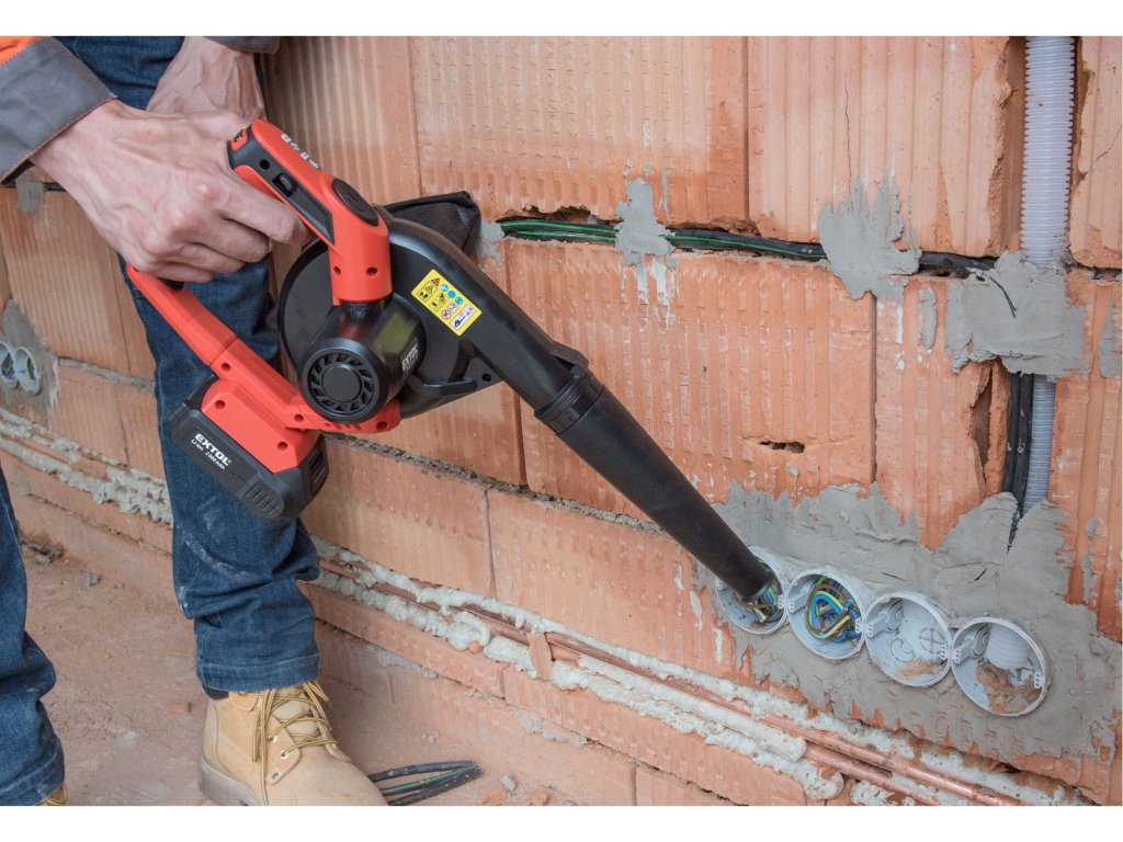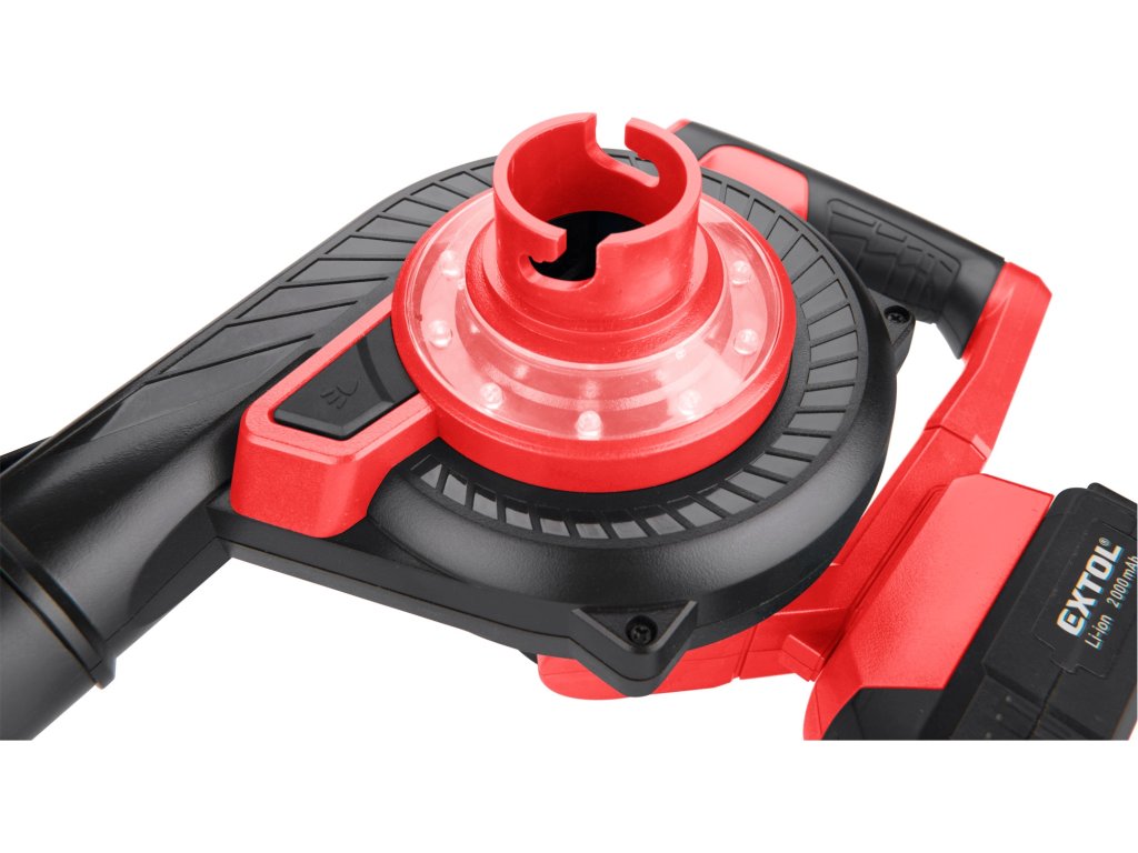 Aku fukar/vysavač 2v1 lze jednoduše přenastavit pro použití jako fukar, nebo jako vysavač se sběrným vakem. Fukarem lze z venkovních ploch proudem vzduchu komfortně odstranit např. zbytky trávy po sekání trávníku, piliny po řezání dřeva, suché jehličí či listí apod. Po přenastavení fukaru na vysavač se sběrným vakem lze vysát pevné částice např. piliny, jehličí a drobné listí z terasy, chodníku, v rozích apod. Sběrný vak lze snadno odejmout a vysypat. Stroj je vybaven regulací průtoku vzduchu dle potřeby a LED světlem pro nasvícení pracovního místa, což je velmi užitečné pokud potřebujete něco vysát v rohu. Když připojíte k fukaru přiložené nástavce, můžete ho použít pro nafukování lehátek, bazénů, kánoí, stanů apod. Díky zajímavému designu je stroj velmi malý a jednoduše přenosný. Pro běžnou práci dostačují jeden nebo dva 2000mAh akumulátory, které můžete rychle nabít v rychlonabíječce, pro náročnější nebo delší práci doporučujeme větší akumulátory s kapacitou 4000–8000mAh. Akumulátor má indikátor nabití a lze použít ve všech typech nářadí řady EXTOL SHARE20V. Díky použité Li-ion technologii je ho možné kdykoliv dobíjet, aniž by se tím snižovala jeho kapacita. Li-ion akumulátor ztrácí energii vlivem samovybíjení velmi pomalu a vydrží dlouho nabitý a připravený k použití.