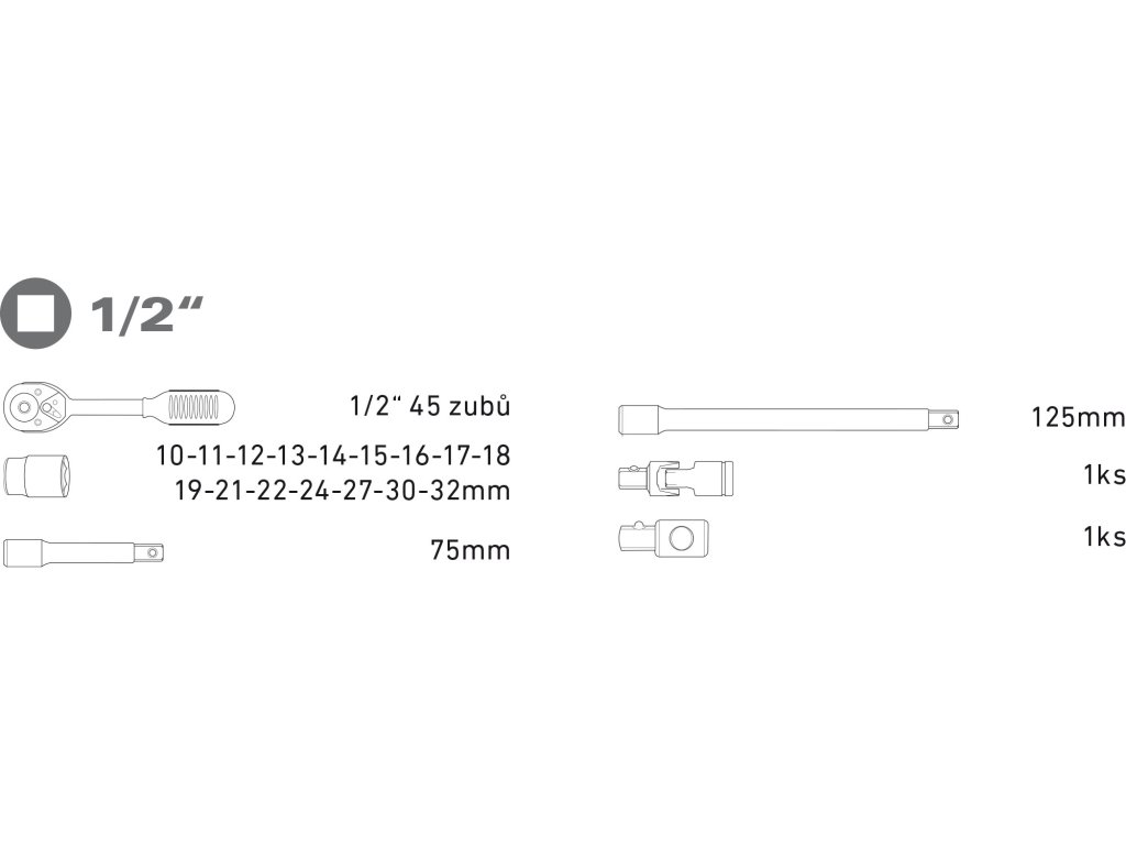 hlavice nástrčné: | 1/2": 10-11-12-13-14?-15-16-17-18-19-21-22-24-27-30-32mm |