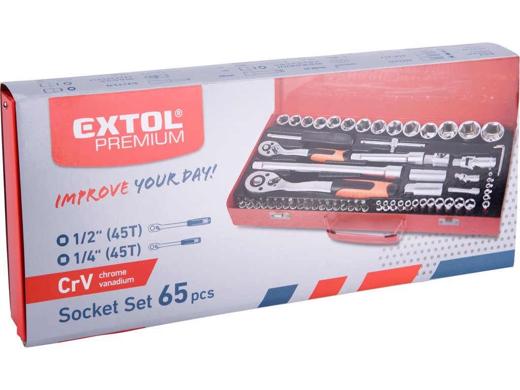 hlavice nástrčné: | 1/4": 4-4,5-5-5,5-6-7-8-9-10-11-12-13mm, E4-5-6-7-8-10, 1/2": 14-15-16-17-18-19-20-21-22-23-24-27-30-32mm |