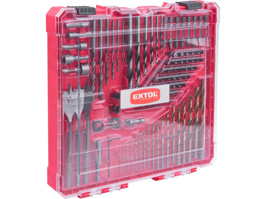- vrtáky do kovu jsou vyrobeny z materiálu HSS-4241; vrtáky do zdiva mají plátek z SK(slinutého karbidu); všechny hroty, nástrčné hlavice, záhlubník, imbusy jsou z CrV oceli