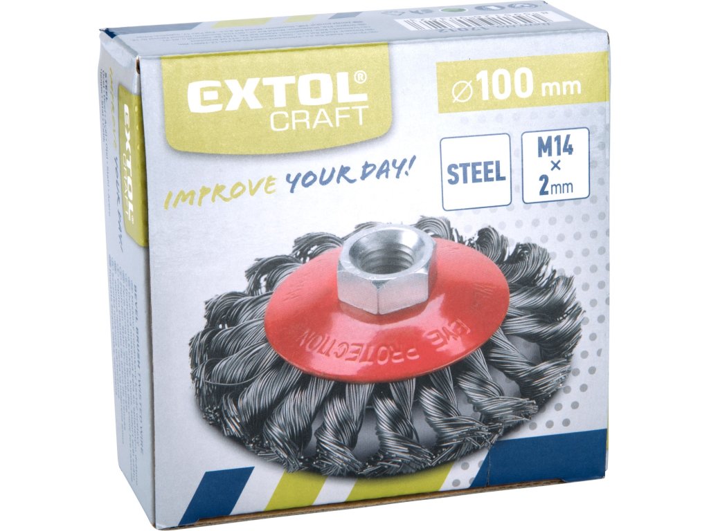 Řada technických kartáčů Extol nabízí široký výběr kartáčů pro všestranné nasazení, např. čištění povrchů materiálů, k odstraňování barev, nečistot, rzi, houževnatých nánosů, ke zdrsňování, odjehlování, odokujování apod. Upínání na úhlové brusky pomocí matice M14 a na vrtačky pomocí stopky o průměru 6mm.