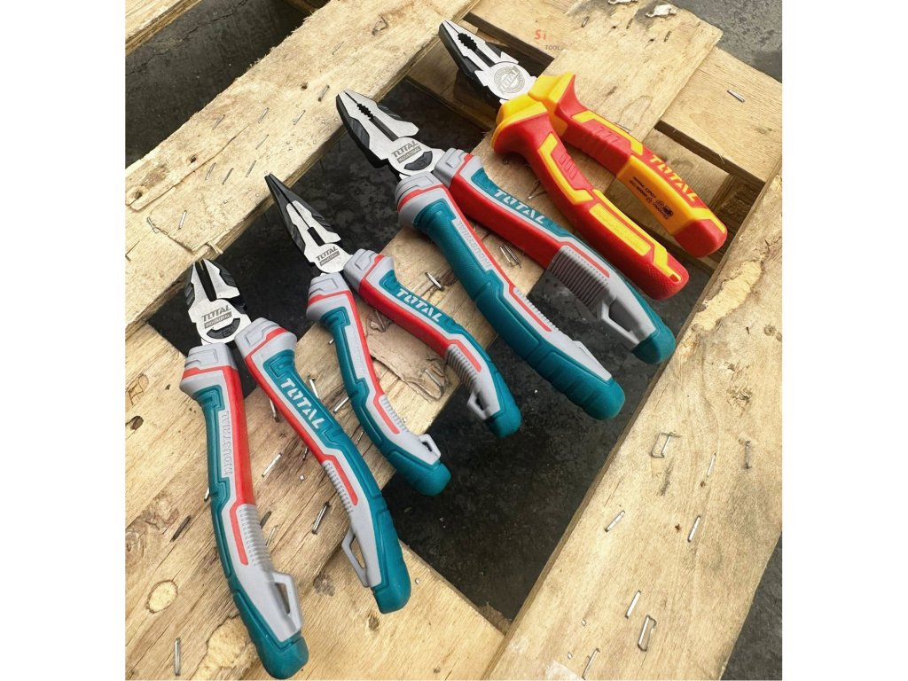 Sada kleští industriální kvality obsahuje kombinované kleště 200mm, kleště boční štípací 160mm, kleště půlkulaté přímé 160mm a kleště kombinované elektrikářské 180mm. Spoje kleští jsou posunuty tak, aby se při práci s nimi usetřila síla při stisku. Čelisti kleští jsou leštěny a kaleny.
