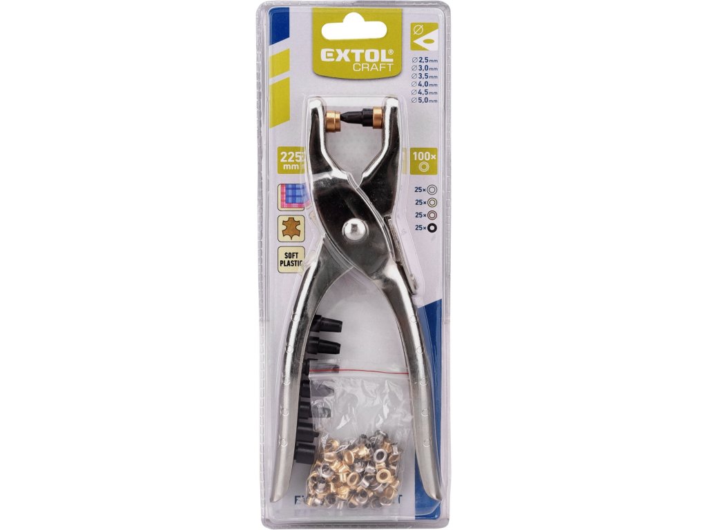 kleště děrovací-drukovací sada se 100ks oček, O 2,5-5mm