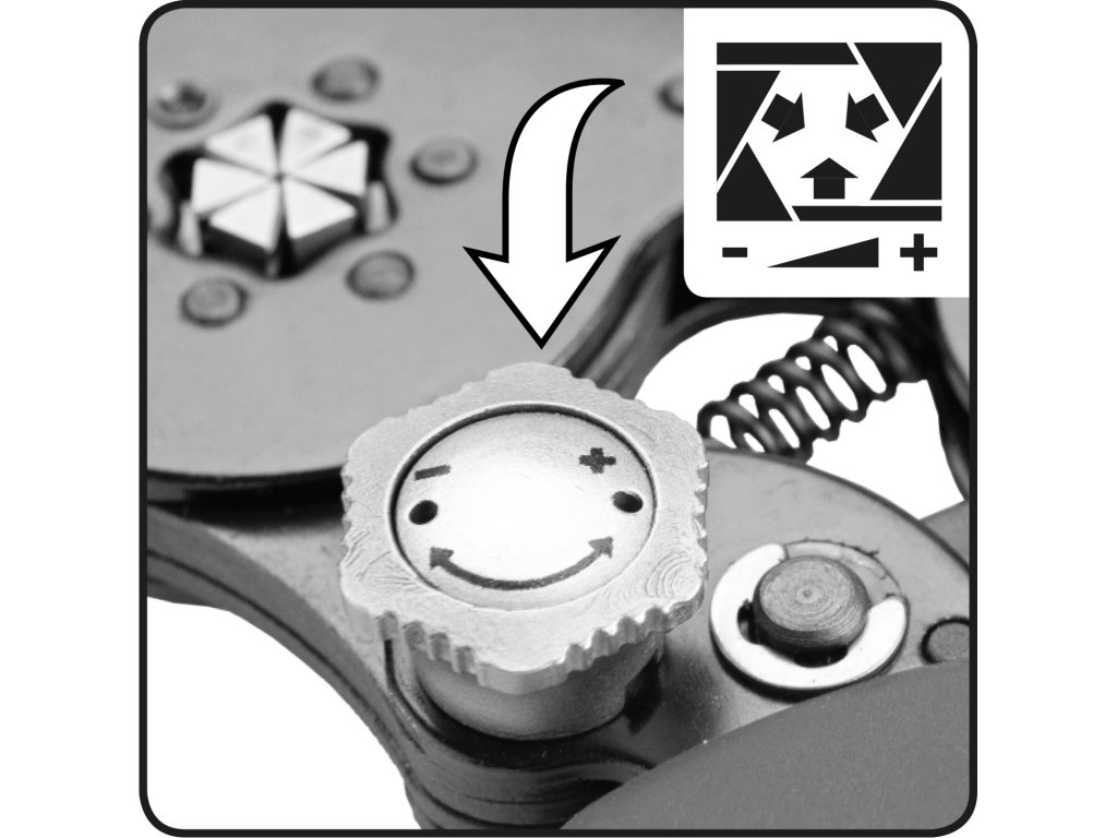 - s regulačním knoflíkem pro nastavení síly stisku čelistí v celkem šesti stupních