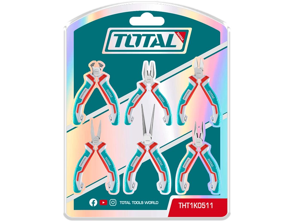 Kombinovaná sada mini kleští obsahující kombinované kleště, štípací kleště boční a přímé, kleště půlkulaté přímé, kleště ploché,
