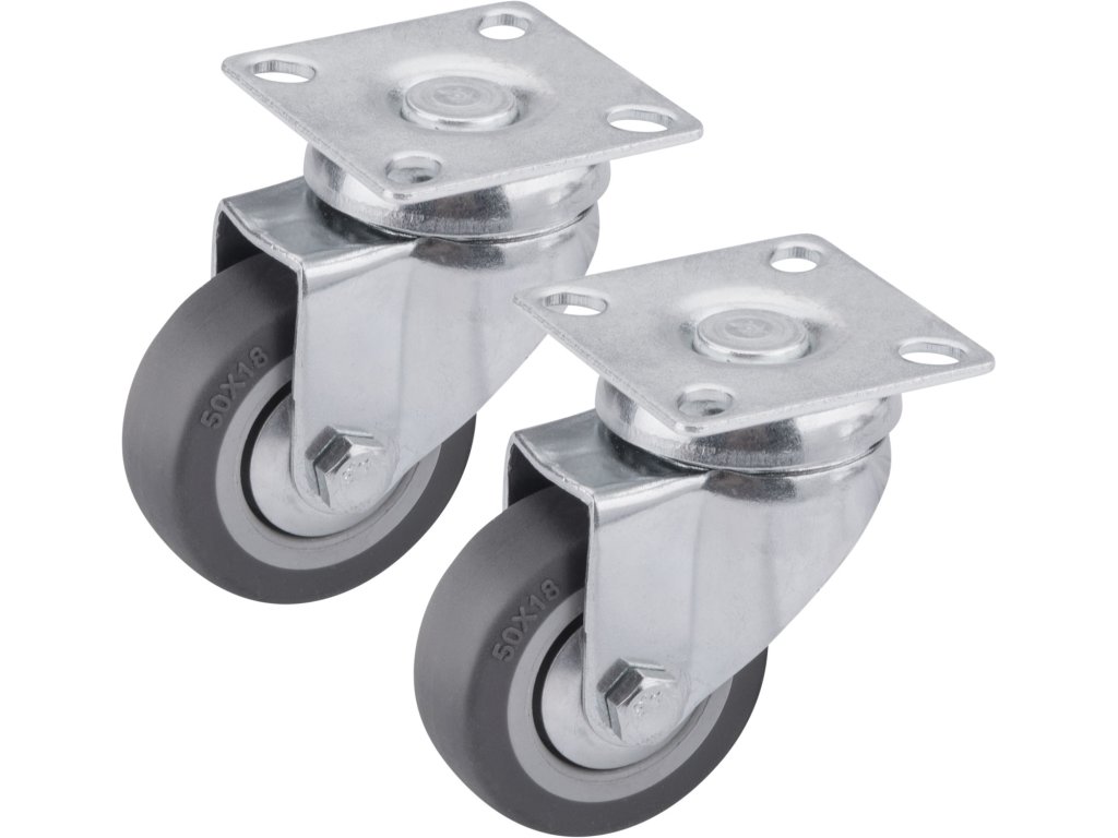 kolečka otočná s obručí ze šedo-hnědé pryže, sada 2ks, průměr 50mm