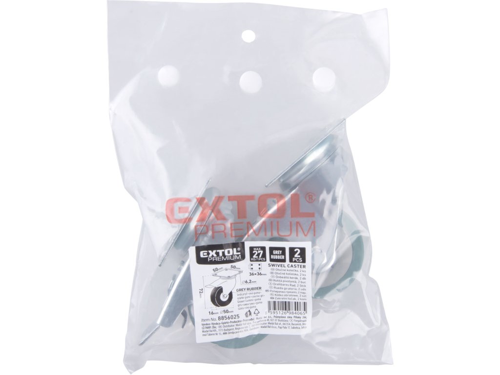 kolečka otočná s obručí ze šedo-hnědé pryže, sada 2ks, průměr 50mm