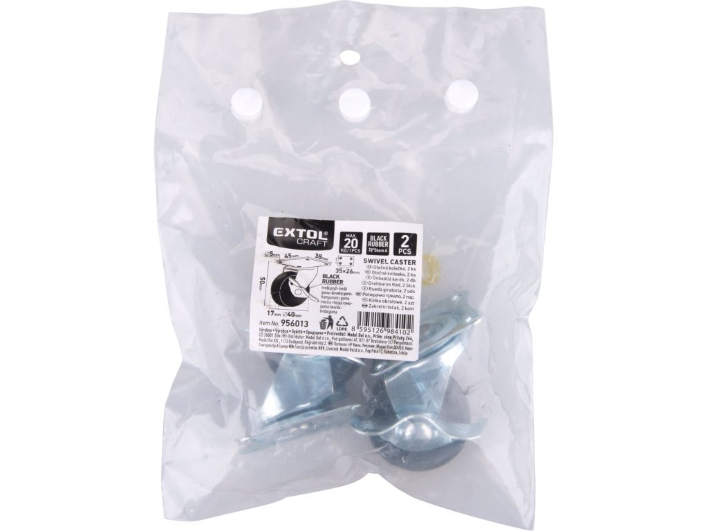 kolečka otočná z tvrdé pryže s brzdou, sada 2ks, průměr 40mm