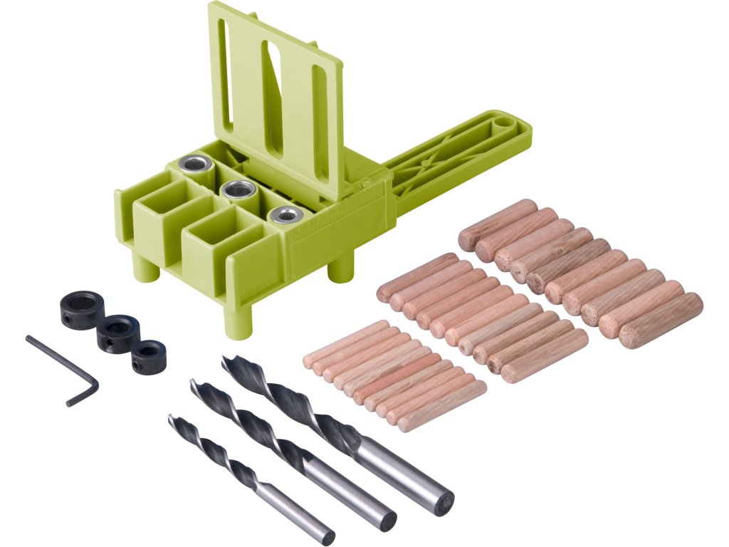 doplňující parametr: | sada obsahuje : kolíkovačku, 1kus vrtáku s dorazem a 2ks značkovacích čepů od každého z průměrů 6-8-10mm a dále 10ks dřevěných kolíků od každého z uvedených průměrů. |