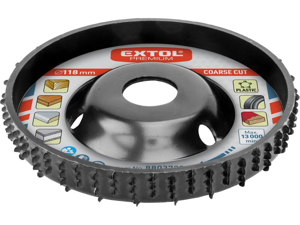 - pro svůj tvar, kdy středová upínací matice je zapuštěná dovnitř, je kotouč vhodný jak pro rovinné obrábění, drážkování (min. šířka drážky je 18mm) tak hloubení do měkkého i tvrdého dřeva. Dále lze kotouč použít na úběr jiných materiálů např. sádrokartonu, lamina, plastů, pryže či odstraňování lepidla a starých nátěrů