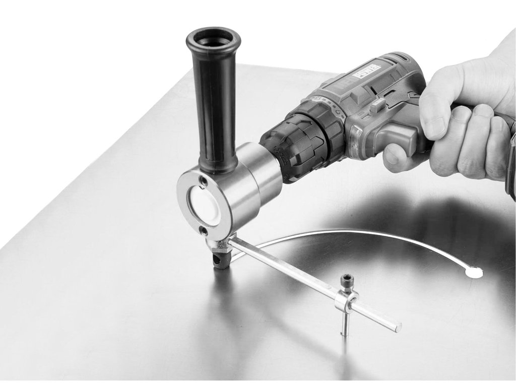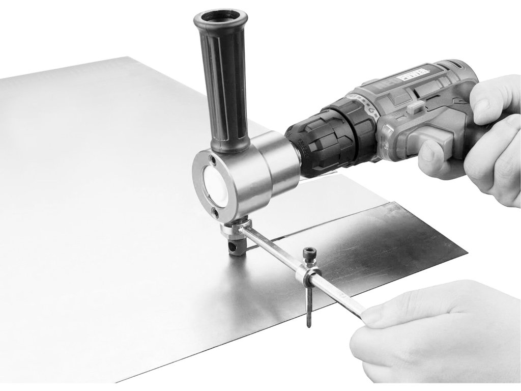 kruhová vodící šablona pro nástavec na vrtačku k stříhání plechu
