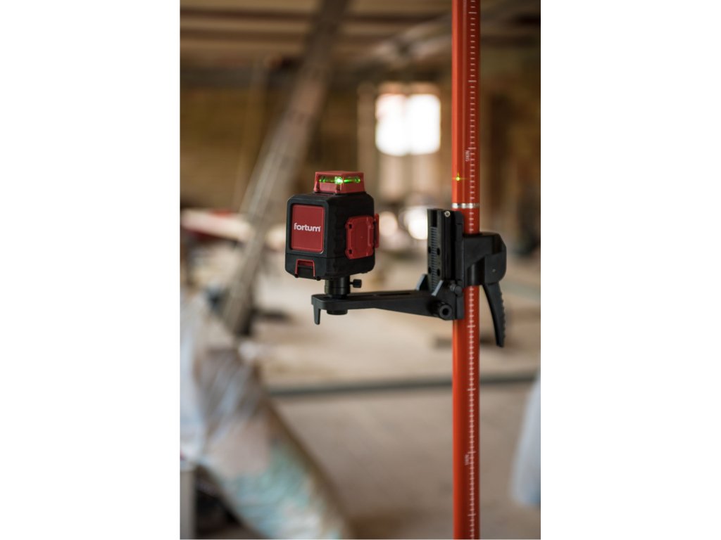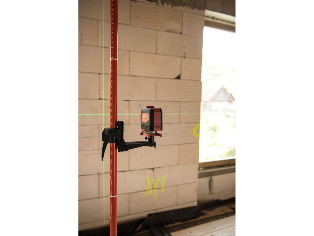 - dobře viditelný zelený laserový paprsek s pulzním módem (pro detekci laserovými přijímači/recievery např. modelem 8823390) dovoluje přístroj použít i ve vnějších prostorách, přístroj disponuje krytím IP 54
