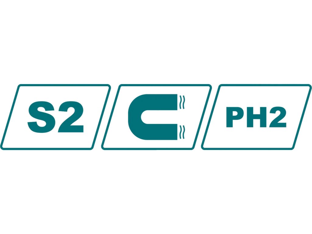Sada PH2 nárazových šroubovacích bitů řady industrial. Větší optimalizovaná Shock Zone snižuje lámání špičky. Průmyslová ocel S2. Černý povrch s magnetem. Baleno v plastové krabičce.