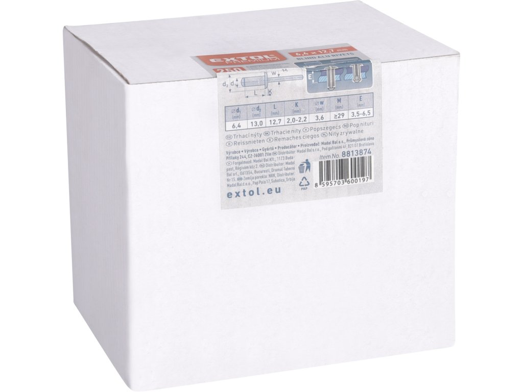 doplňující parametr: | pracovní rozsah/tl. nýtovaného materiálu 3,5-6,5mm |