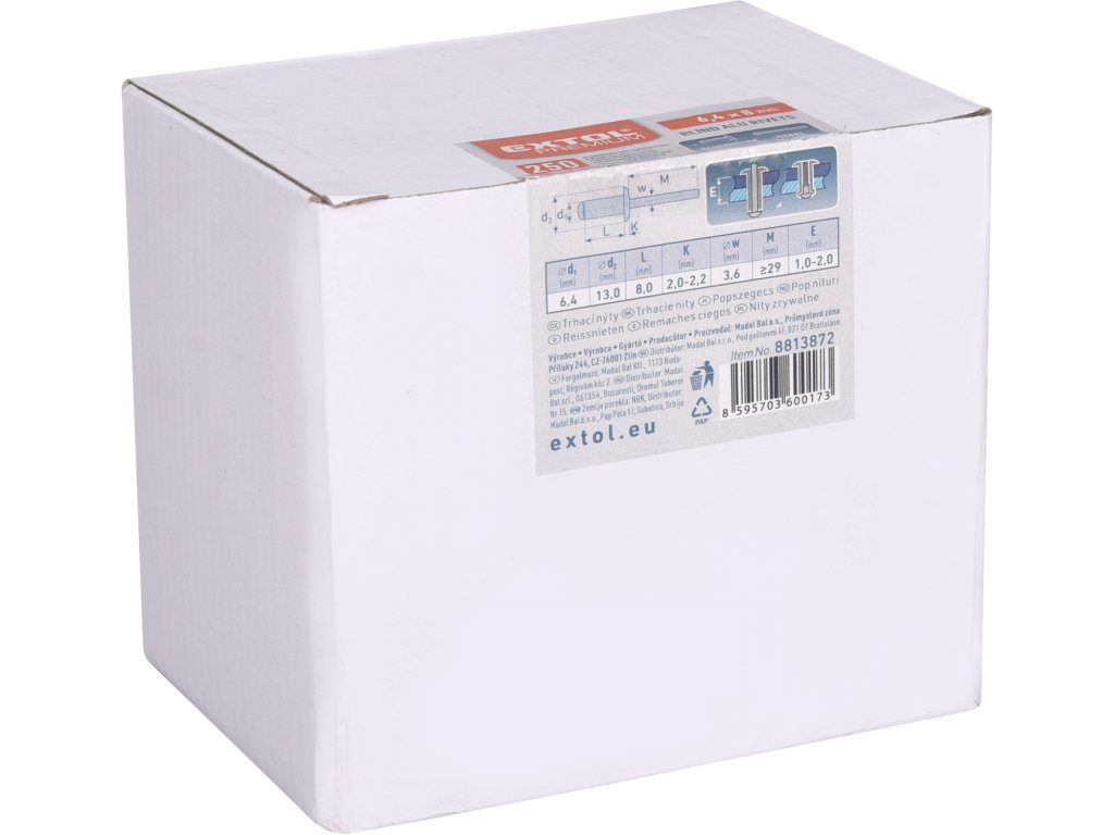 nýty trhací hliníkové sada 250ks, O 6,4x8mm plochá hlava