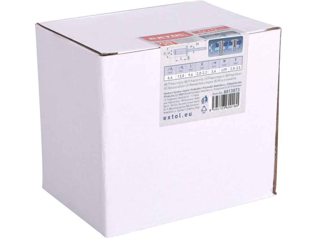 nýty trhací hliníkové sada 250ks, O 6,4x9,6mm plochá hlava