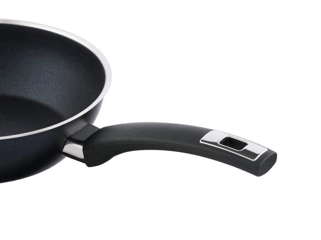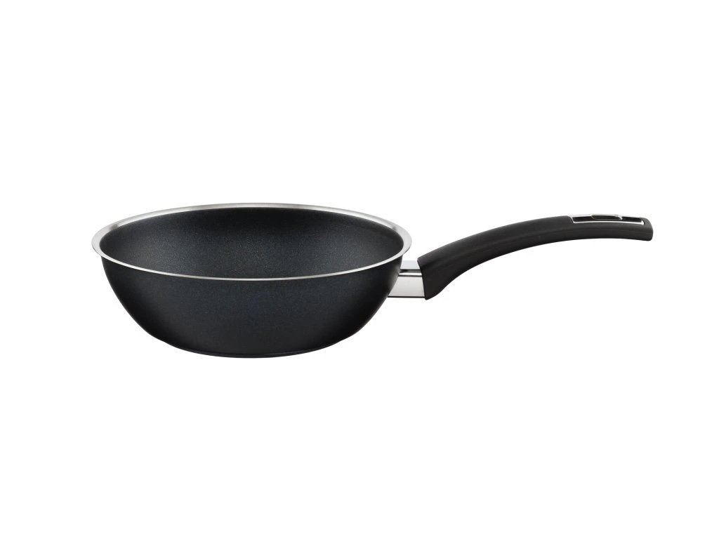Pánve COMFORT BLACK od českého výrobce. Masivní pánve z nerezavějící potravinářské oceli, s nepřilnavým povrchem PROFESSIONAL-R, který je vyztužený keramickými částicemi.