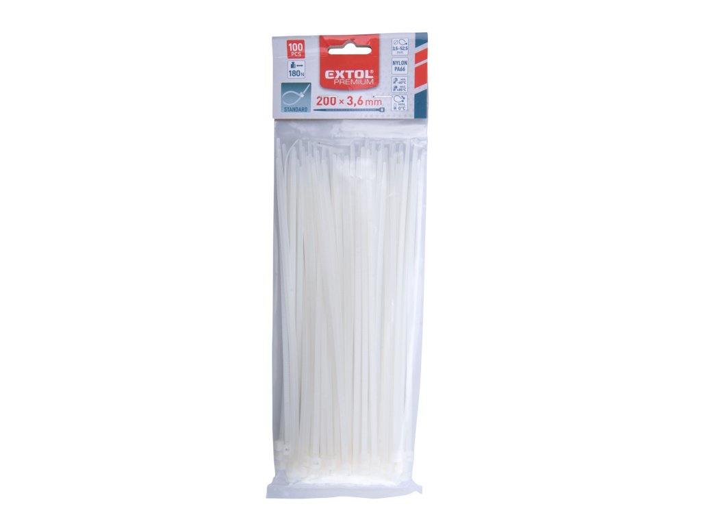 pásky stahovací na kabely bílé, 200x3,6mm, 100ks, nylon PA66