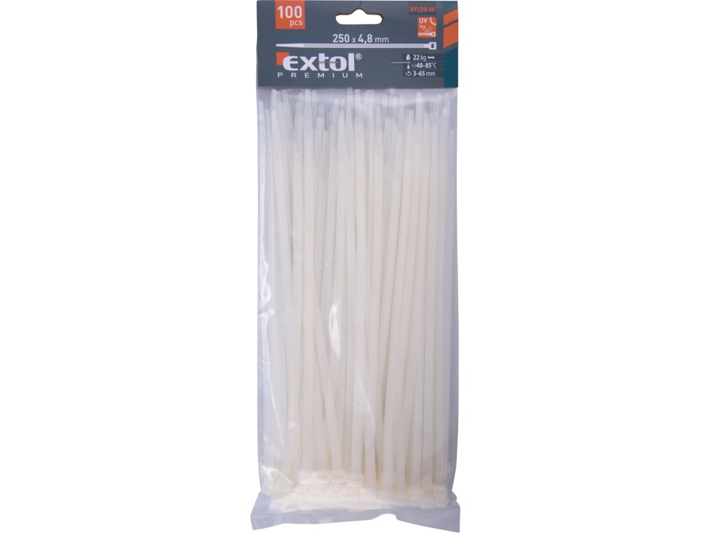 pásky stahovací na kabely bílé, 250x4,8mm, 100ks, nylon PA66