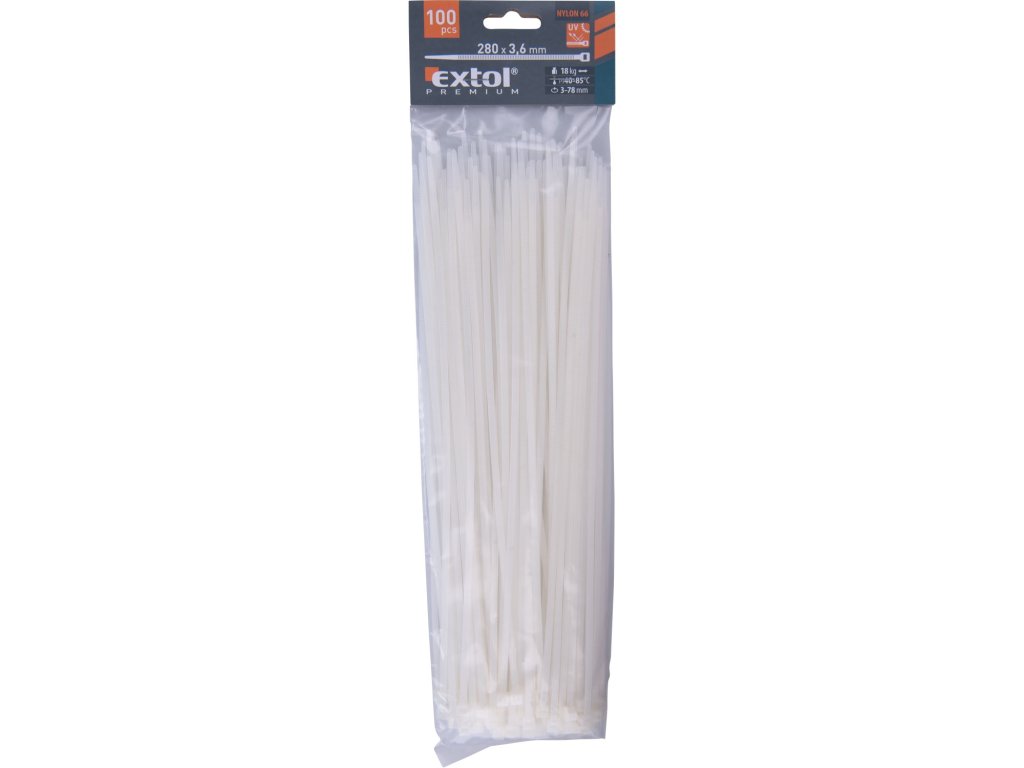 pásky stahovací na kabely bílé, 280x3,6mm, 100ks, nylon PA66