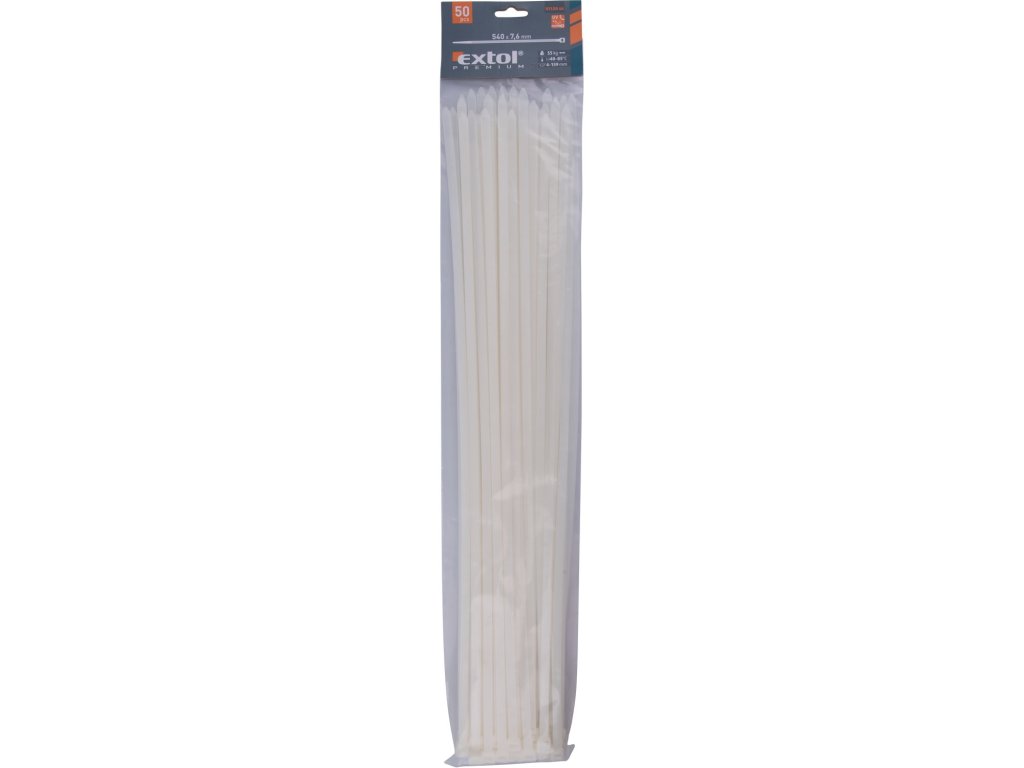 pásky stahovací na kabely bílé, 540x7,6mm, 50ks, nylon PA66