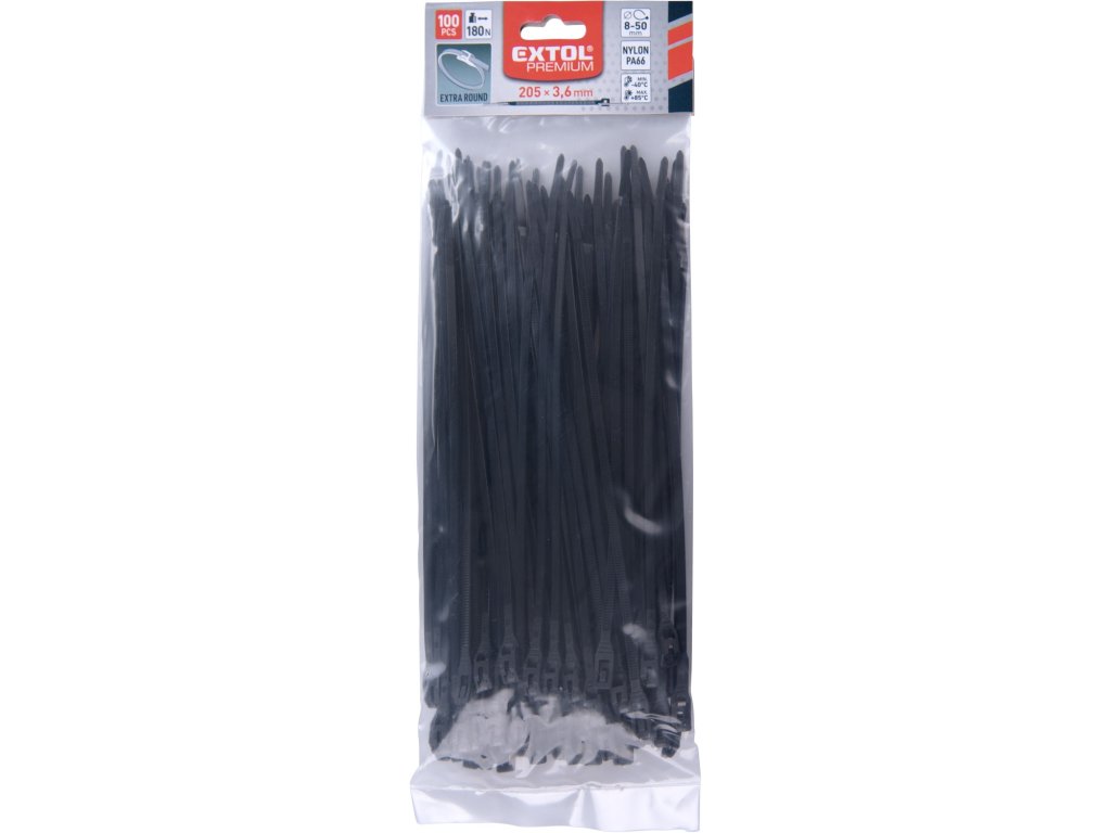 pásky stahovací na kabely EXTRA, černé, 200x3,6mm, 100ks, nylon PA66