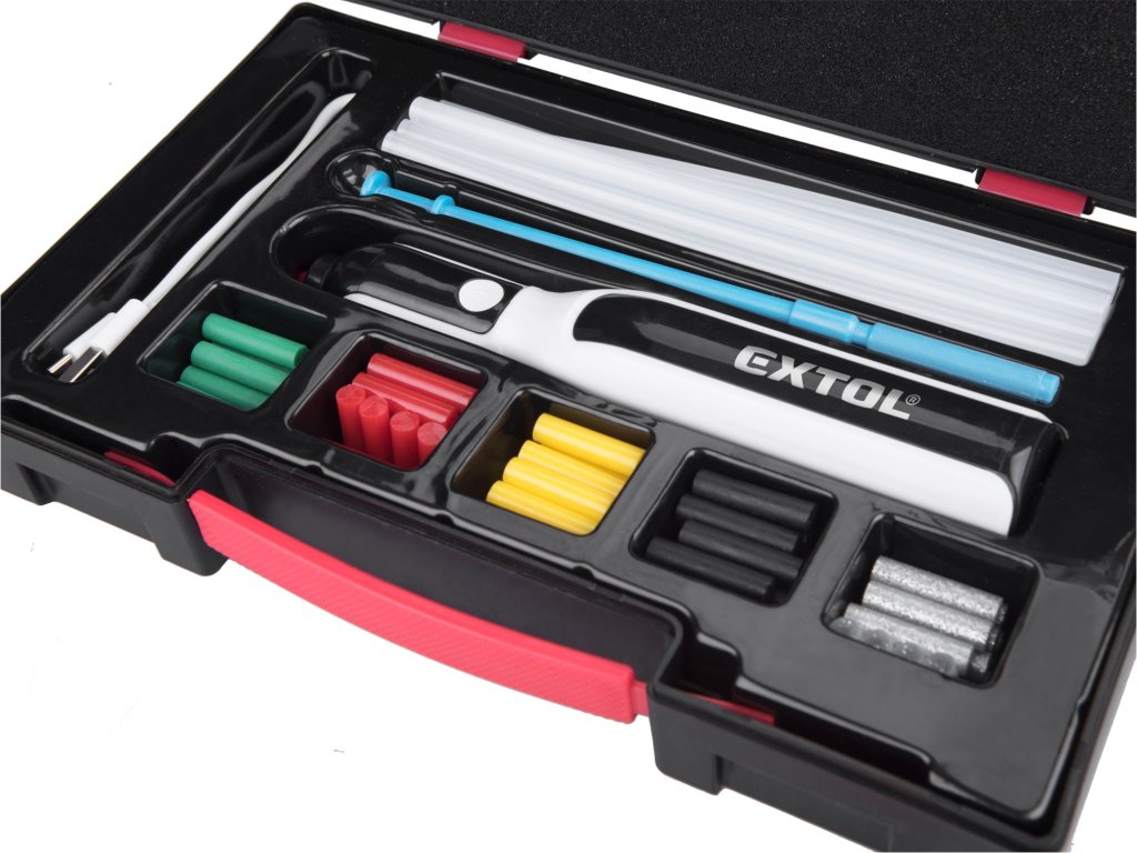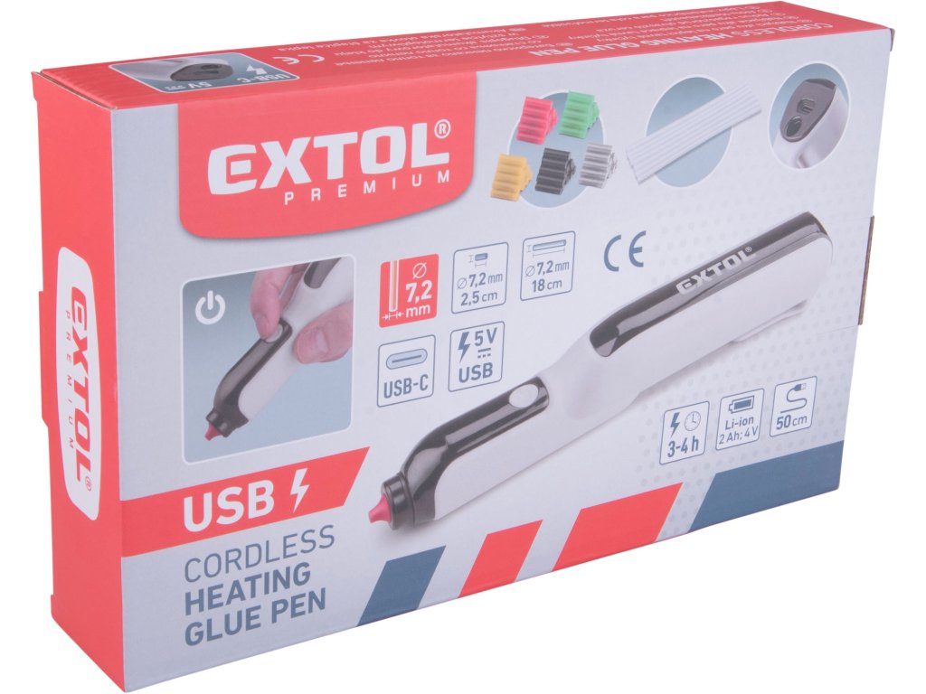 Aku lepící tavné pero je určena k roztavení a nanášení tavného lepidla za účelem rychlého slepení papíru, korku, dřeva, kůže, textilie, umělé hmoty, keramiky atd. Je vhodné také pro různé projekty kde je nutné používat různé barvy lepidla, protože má dobře vyřešenou výměnu barevných tyčinek. Pero je bezdrátové a je napájeno vysoce výkonným Li-ion akumulátorem. Díky našemu inovativnímu systému řízení ohřevu má superrychlé zahřátí je připraveno k práci už za 6sec. Tenké tělo se snadno drží v ruce a umožňuje Vám co největší svobodu při projevení vaší kreativity. Speciální elektronika zajišťuje automatický systém podávání lepicí tyčinky, konstantní rychlost toku lepidla a vše lze ovládat jedním tlačítkem. Funkce úspory baterie, pero automaticky vypne po 30 sekundách bez stlačení tlačítka, takže pokud na pero zapomenete, nevybije se vám baterie. Konstrukce pera snižuje možnost ukapávání, ucpání lepidlem a speciální špička chrání před popálením. Nepřítomnost napájecího kabelu zvyšuje komfort při používání a svobodu při pohybu. Pero se nabíjí pomocí standardního USB-C kabelu z jakékoliv USB nabíječky nebo počítače. Plné nabití trvá 3-4 hodiny a umožňuje 40minutovou nepřetržitou práci. Nástroj je uložen v pevné plastové krabici spolu s mnoha lepícími tyčinkami, USB kabelem a dalším příslušenstvím. Díky Li-ion akumulátoru je možné pistoli kdykoliv dobíjet, aniž by se tím snižovala kapacita akumulátoru. Li-ion akumulátor ztrácí energii vlivem samovybíjení velmi pomalu a vydrží dlouho nabitý.