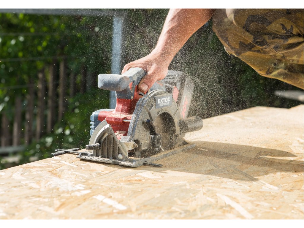 Aku kotoučová pila je navržena tak, aby uživatelům poskytla výkonné a snadné řezání při různých instalatérských, elektrických, rámovacích, dokončovacích a tesařských pracích. Pila je poháněná silným motorem s otáčkami 3650/min, který umožňuje uživatelům rychle a snadno řezat tvrdým materiálem. Horní a spodní kovový ochranný kryt poskytují vynikající ochranu kotouče při pádu. Gumová měkká rukojeť je ergonomicky navržena tak, aby uživatelům poskytovala vynikající pohodlí a vyvážení pro snadno ovladatelné řezy. Pro běžnou práci dostačují jeden nebo dva 2000mAh akumulátory, které můžete rychle nabít v rychlonabíječce, pro náročnější nebo delší práci doporučujeme větší akumulátory s kapacitou 4000–8000mAh. Akumulátor lze použít ve všech typech nářadí řady EXTOL SHARE20V. Díky použité Li-ion technologii je ho možné kdykoliv dobíjet, aniž by se tím snižovala jeho kapacita. Li-ion akumulátor ztrácí energii vlivem samovybíjení velmi pomalu a vydrží dlouho nabitý a připravený k použití.