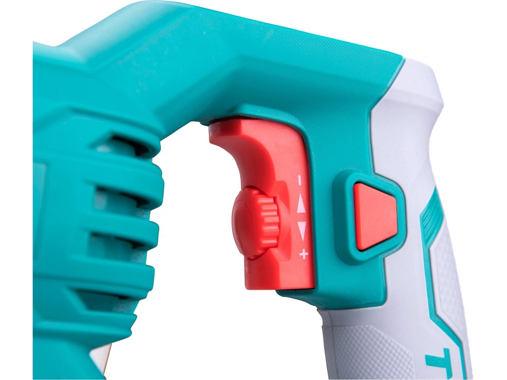 - regulátor počtu kmitů umístěný nedaleko vypínače pro jednoduché nastavení optimálních otáček podle řezaného materiálu