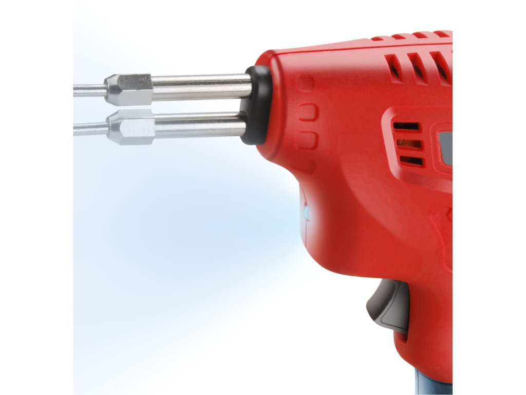 - dobrým vyvážením a pogumovanou rukojetí je zajištěno pohodlné a nenamáhavé držení pájecí pistole při práci