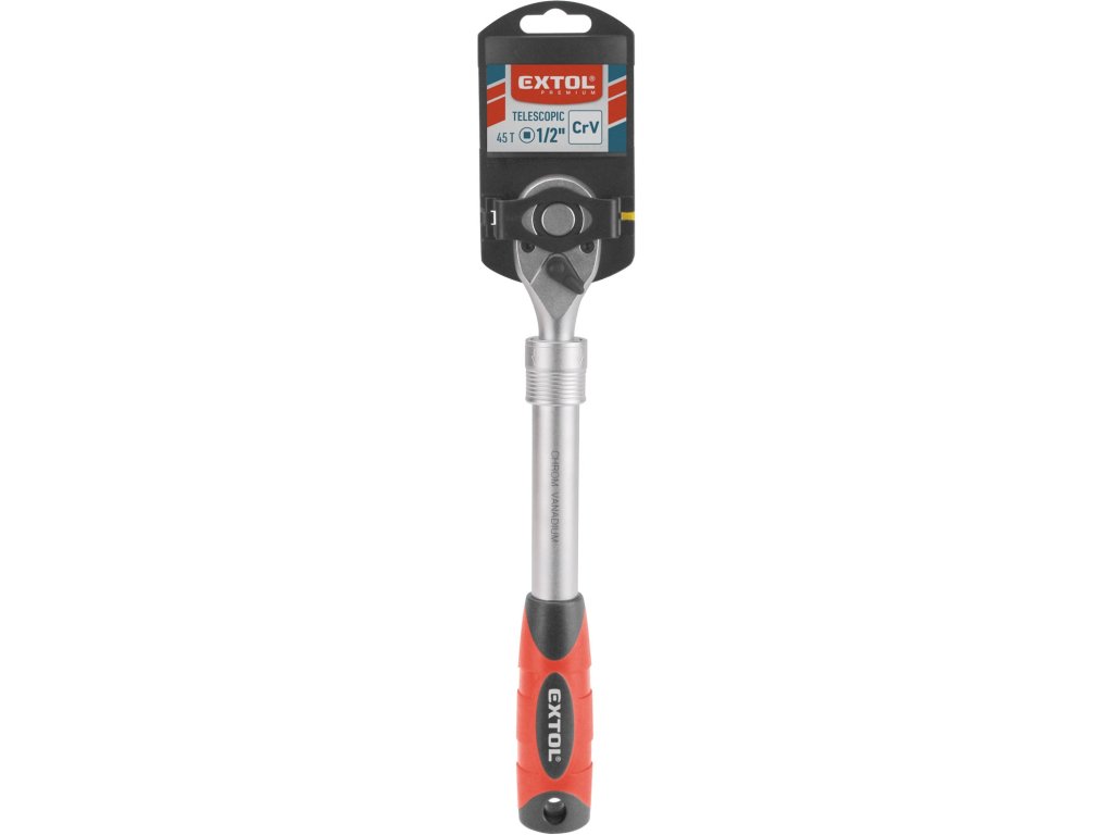 - teleskopická rukojeť umožňuje prodloužení celkové délky ráčny, tím se zmenšuje síla potřebná k povolení nebo utažení šroubů a matic