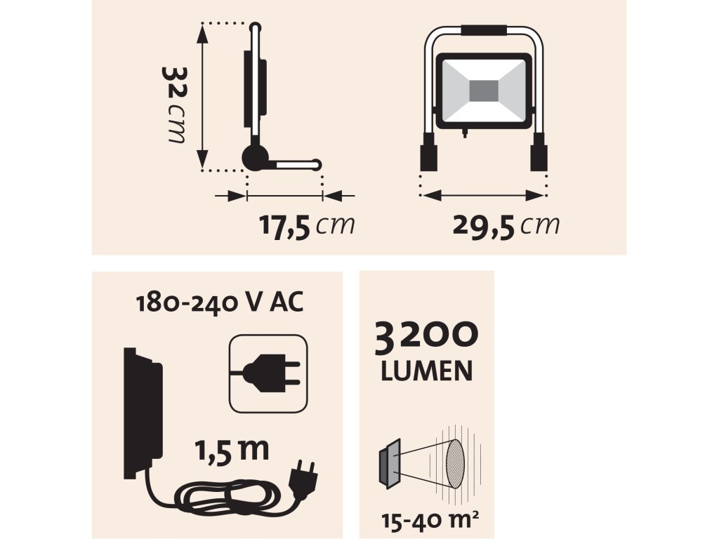 LED reflektor je zdrojem příjemného bílého světla, které kvalitou odpovídá dennímu světlu. LED reflektory se stojanem jsou díky vysokému výkonu a jednoduchému a dobře polohovatelného stojanu ideálním pracovním světlem. Mají 1,5m dlouhý kabel a jsou vybaveny vypínačem na těle světla. Mezi další výhody těchto reflektorů patří nízká spotřeba energie, odolnost proti dešti, prachotěsnost, bezúdržbovost, mechanické odolnost a dlouhá životnost (více než 30 000 hod.).