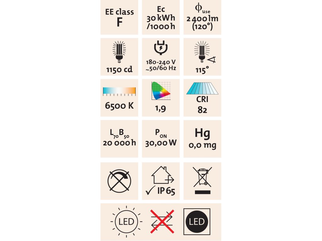- krytí IP65 zajišťuje odolnost vůči dešti a prachu