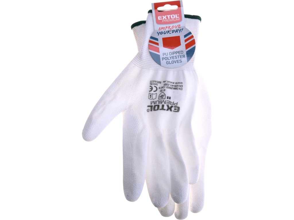 rukavice z polyesteru polomáčené v PU, bílé, velikost 10"