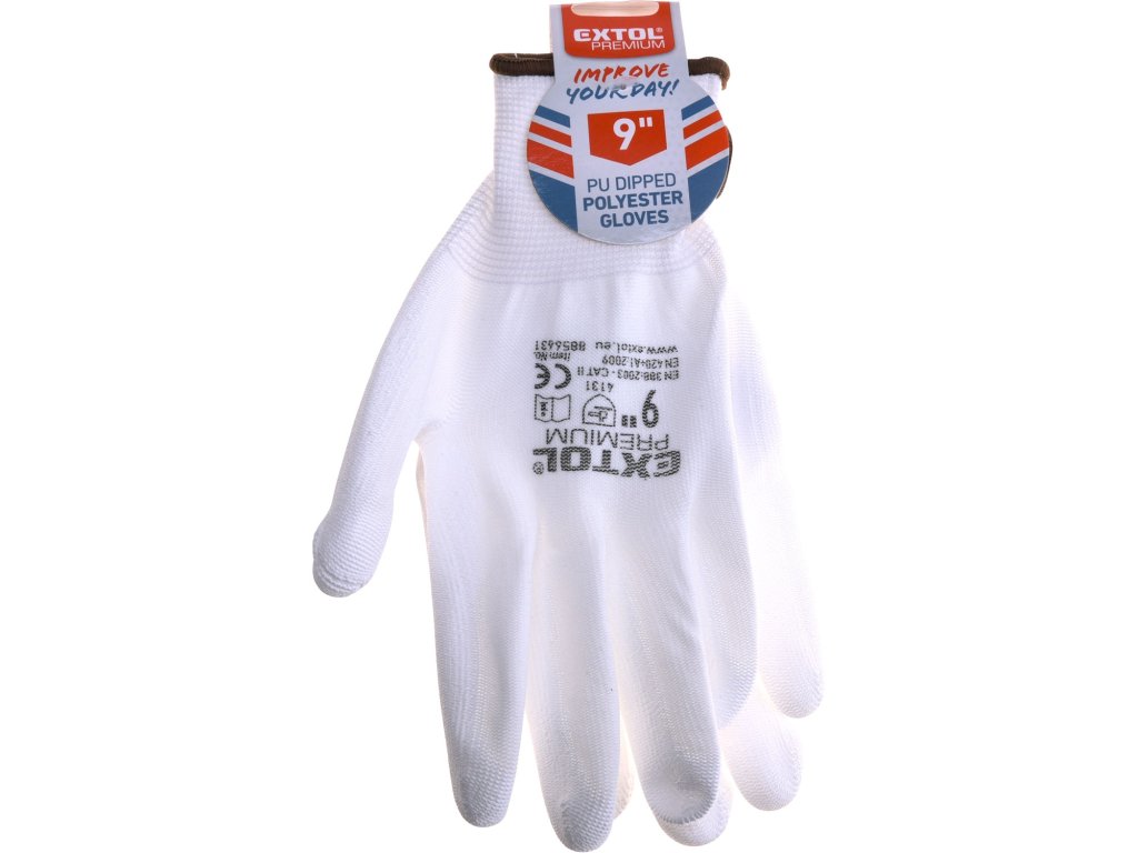 rukavice z polyesteru polomáčené v PU, bílé, velikost 9"
