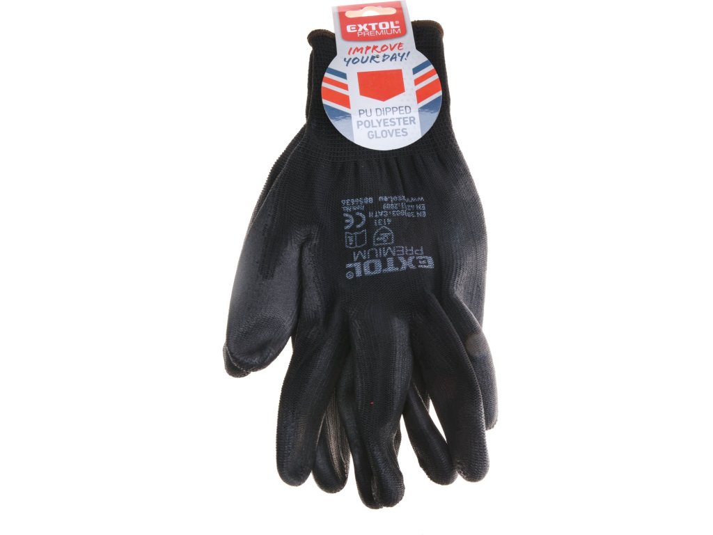 rukavice z polyesteru polomáčené v PU, černé, velikost 10"