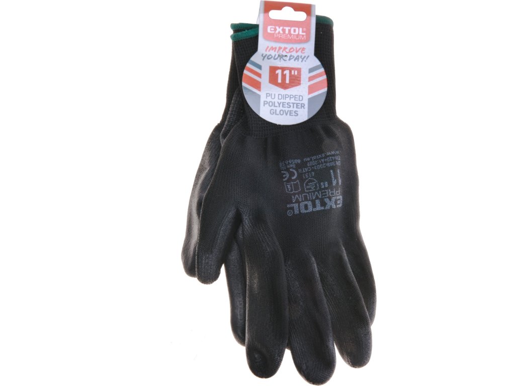 rukavice z polyesteru polomáčené v PU, černé, velikost 11"