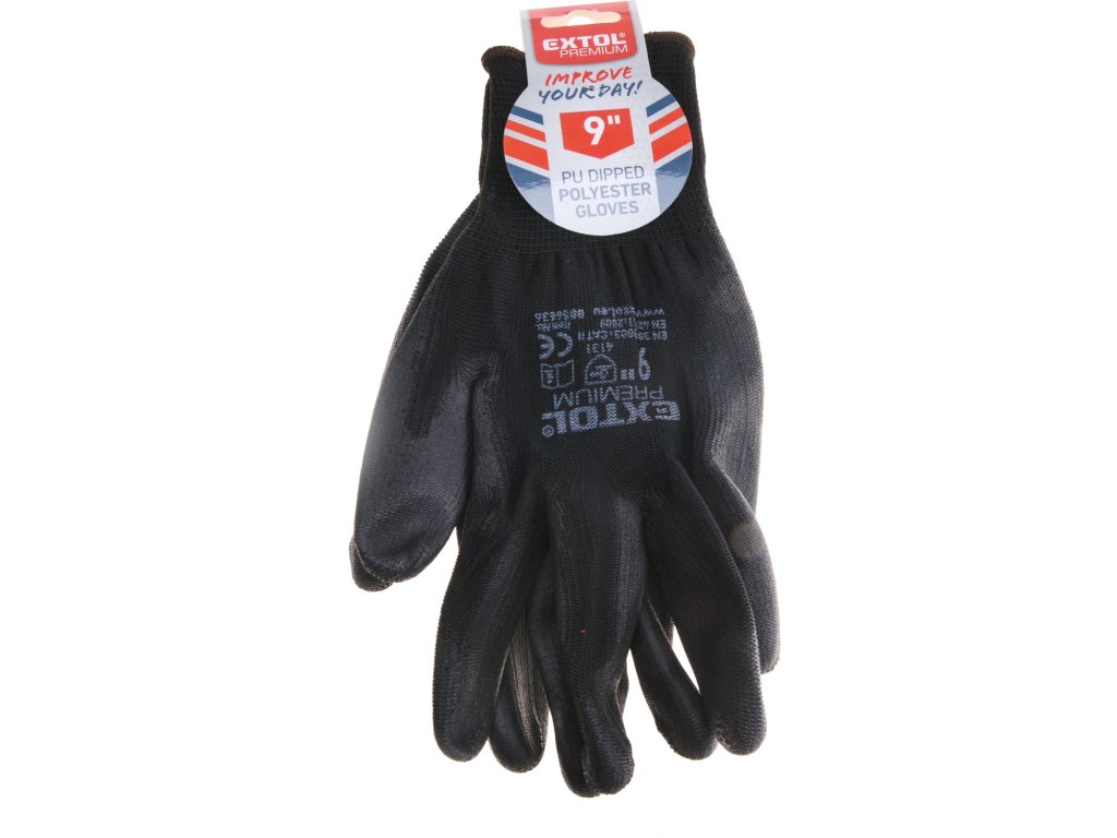 rukavice z polyesteru polomáčené v PU, černé, velikost 9"