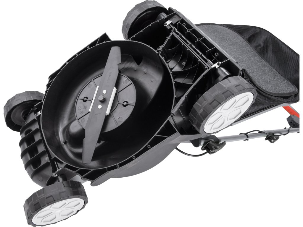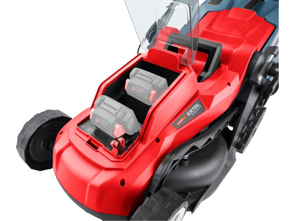 Aku sekačka spojuje výhody elektrických sekaček - nízký hluk, jednoduchost obsluhy a údržby se svobodou pohybu benzínových sekaček. Sekačka je poháněná nejmodernějším „brushless" motorem. Tento nový typ motoru má vyšší životnost, je výkonnější a má menší spotřebu el. energie než klasické motory s uhlíkovými kartáči. Pro pohon aku sekačky je nutné použít dva akumulátory Li-ion 20V. S plně nabitými akumulátory můžete pravidelně sekat 200-250m2 travní plochy. Tato rozloha může být ovlivněna výškou a kvalitou sekaného travního porostu. Výšku sekání lze upravit v rozsahu 25-65mm. Nízká hmotnost sekačky umožňuje snadnější manipulaci při použití ve strmějším terénu, přenášení a také při použití staršími lidmi. Masivní kola ulehčují pohyb sekačky v terénu. Koš na trávu je vyroben částečně z plátna, které dovoluje zmenšit rozměr koše při skladování. Sekačka je vybavena dvojitým bezpečnostním jištěním - spoušť sekačky je jištěna bezpečnostním tlačítkem a vedle baterie je speciální bezpečnostní klíč, bez kterého nelze sekačku spustit. Pokud ho vytáhnete a vezmete si ho sebou, nemohou například děti spustit sekačku a zranit se.