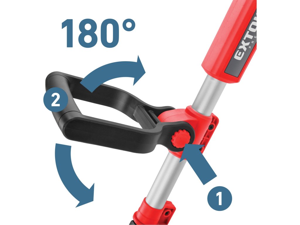 Strunová sekačka je ideální pro údržbu zahradního trávníku, úpravu jeho okrajů a sekání trávy na těžko přístupných místech, jako jsou obrubníky, prostory pod lavičkami, kolem stromů a keřů, kde není možné použít pojízdnou sekačku. Sekací hlava umožňuje nastavení úhlu a otočení o 90°, což usnadňuje práci podél chodníků, příjezdových cest a dalších hran. Rukojeť lze prodloužit až o 26 cm, a proto sekačku pohodlně ovládají lidé všech výšek. Strunu lze prodloužit manuálně stiskem tlačítka na hlavě nebo poloautomaticky během sekání. Ochranný kryt je vybaven nožem, který automaticky zastřihává strunu na správnou délku. Díky bateriovému napájení odpadá starost o napájecí kabel, sekačka je lehčí, snadno ovladatelná a velmi tichá, což oceníte zejména při sekání v hustě obydlených oblastech nebo brzy ráno. Pogumovaná rukojeť zajišťuje bezpečný a pohodlný úchop, tlumí vibrace a zabraňuje vyklouznutí. Vytahovací distanční oblouk usnadňuje sekání podél plotů, zdí a stromů a zároveň šetří strunu. Údržba sekačky je minimální – díky moderní konstrukci není potřeba pravidelně mazat ani se starat o složité servisní úkony. Pro běžné použití postačí jeden nebo dva 2Ah akumulátory, které lze rychle dobít v rychlonabíječce. Pro náročnější nebo delší práci doporučujeme akumulátory s vyšší kapacitou 4–8Ah. Akumulátor je vybaven indikátorem nabití a je kompatibilní se všemi nástroji řady EXTOL SHARE20V. Díky Li-ion technologii jej můžete dobíjet kdykoli bez obav o snížení kapacity. Li-ion akumulátory se samovybíjením ztrácejí energii velmi pomalu, zůstávají dlouho nabité a vždy připravené k použití.