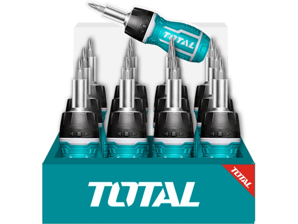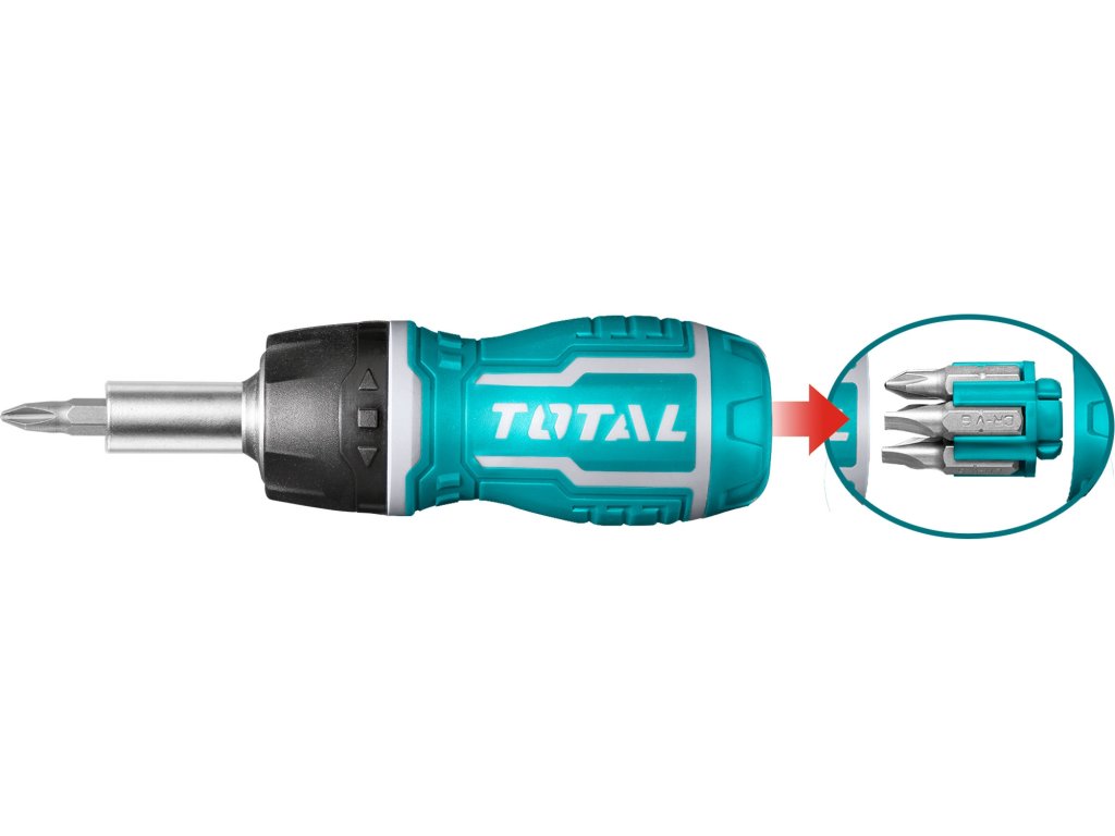 Obsahuje 1ks ráčnového šroubovák s vysoce kvalitní ráčnou, 7 ks 1/4 25mm hrotů velikosti:SL5,SL6,PH0,PH1,PH2,T10,T20