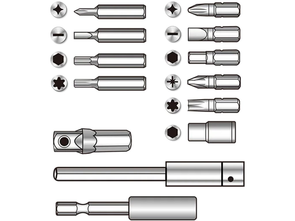 | hroty: | SL4 SL5 SL6 PH1 PH2 PH2 PH2 PH3 PZ1 PZ2 PZ3 T10 T15 T20 T25 T30 T40 H3 H4 H5 H6 |