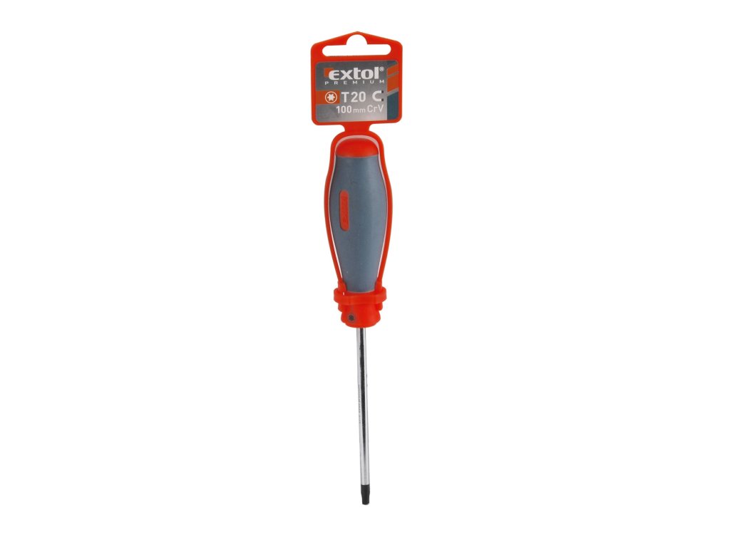 - ergonomicky výrazně tvarovaná rukojeť z tvrdého PP plastu, měkčená na povrchu protiskluzovou TPR gumou, je charakteristická výrazným rozšířením střední části rukojeti pro zvýšení kroutící síly šroubováku